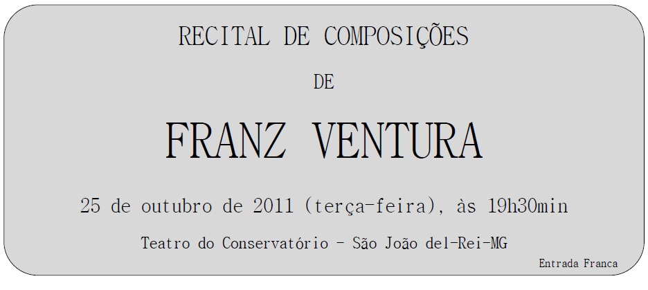 Constam do programa do Recital as seguintes peças de autoria de Franz Ventura: 3 prelúdios para sopros, a saber: