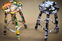 18h - Oficina de reciclagem utilizando técnica de colagem e decoupagem com xerox de fotos em papel para transformação de embalagem de vidros e banquetas em novos objetos de decoração.