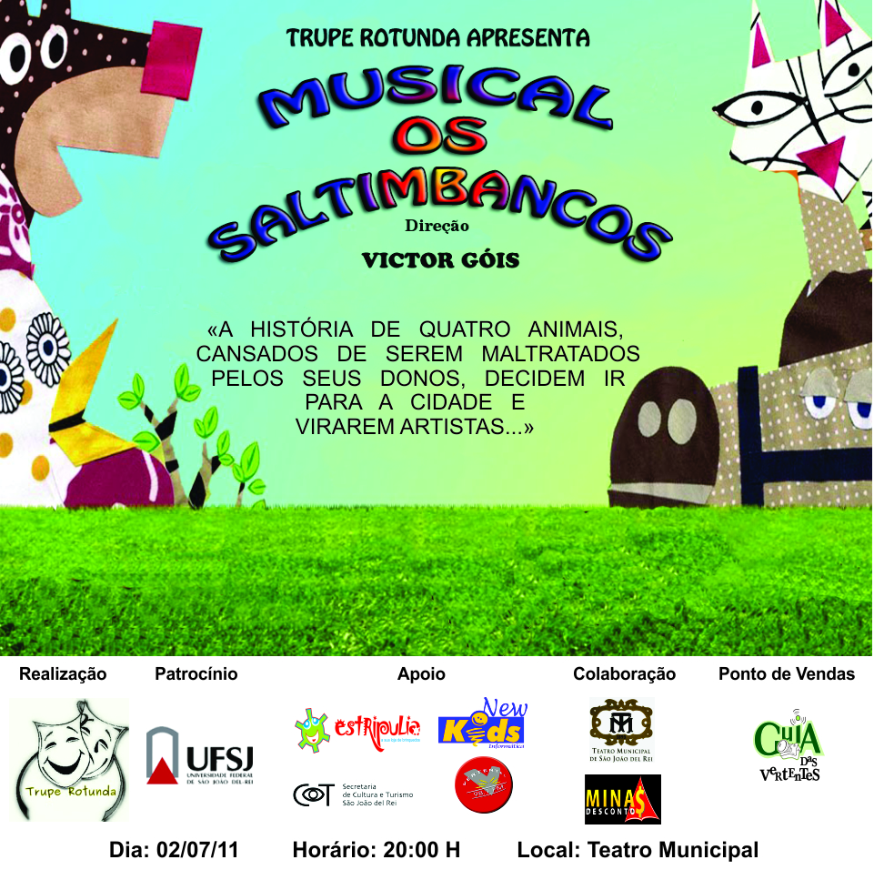 Musical infantil de Sérgio Bardotti e Luis Enríquez Bacalov, com versão em português de Chico Buarque. O espetáculo é adaptado pela Trupe Rotunda, e se passa dentro de um quarto de criança, com muitos brinquedos, bichos de pelúcia, tudo muito lúdico para mexer com a imaginação do espectador. A história dos “Saltimbancos” é contada pela mãe de duas crianças, que tenta fazêlas dormirem. Quando elas caem no sono, a mãe sai do quarto e os animais de pelúcia e os brinquedos (bonecos de chumbo, bonecas etc. ) ganham vida e se transformam nos bichos, bailarinos e nos músicos que vão dar continuidade a história. Neste momento o cenário também ganha novas formas, onde os objetos vão se transformar dando ideia de um outro lugar, lúdico, como se as crianças mergulhassem no sonho, na imaginação que a mãe acabara de contar. No fim, a mãe volta para ver se elas realmente dormem, e todos os bichos e brinquedos voltam ao seu estado normal, dando a entender que, realmente tudo não passou de um sonho.
