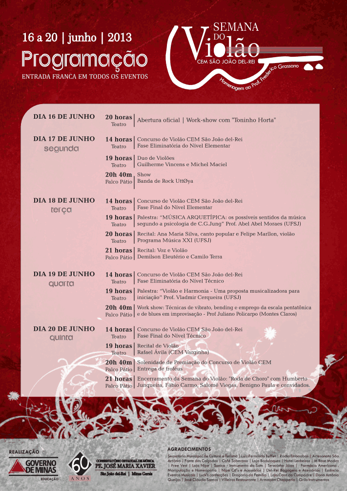 Semana do Violão do CEM Pe. José Maria Xavier . De 16 a 20 de Junho . Programação Completa