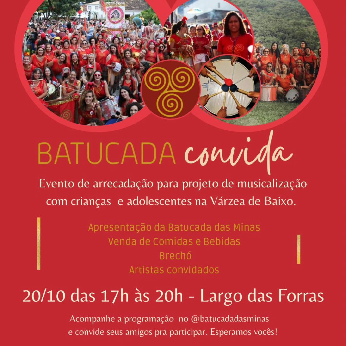O Batucada Convida, evento musical, acontece em Tiradentes no dia 20 de outubro, a partir das 17h, no Largo das Forras. O encontro contará com apresentações da Batucada das Minas e de vários convidados.