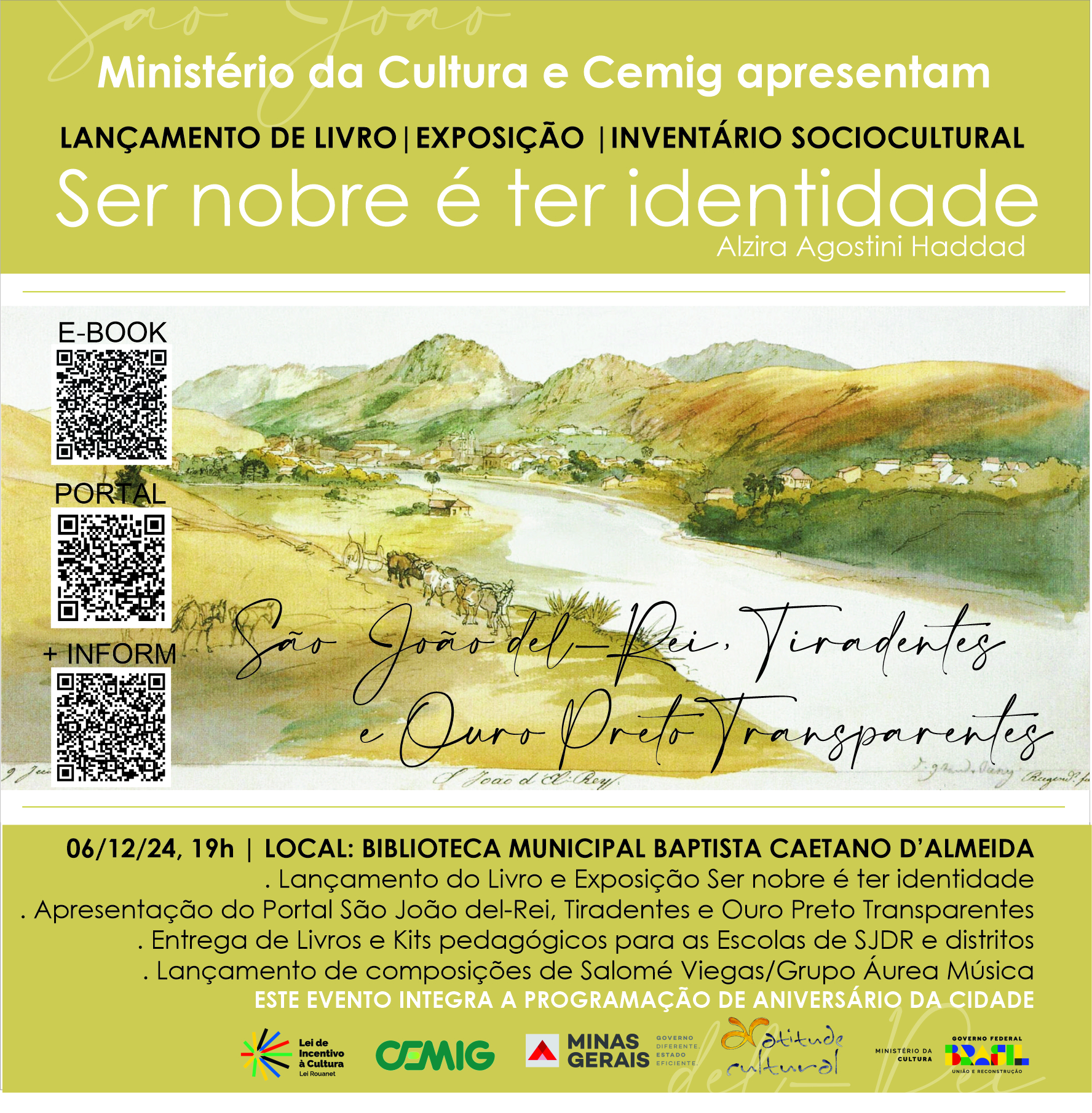 EM SÃO JOÃO DEL-REI O LANÇAMENTO DO LIVRO SER NOBRE É TER IDENTIDADE: no evento do aniversário da cidade, 06 de dezembro/19h na BIBLIOTECA MUNICIPAL BAPTISTA CAETANO D'ALMEIDA