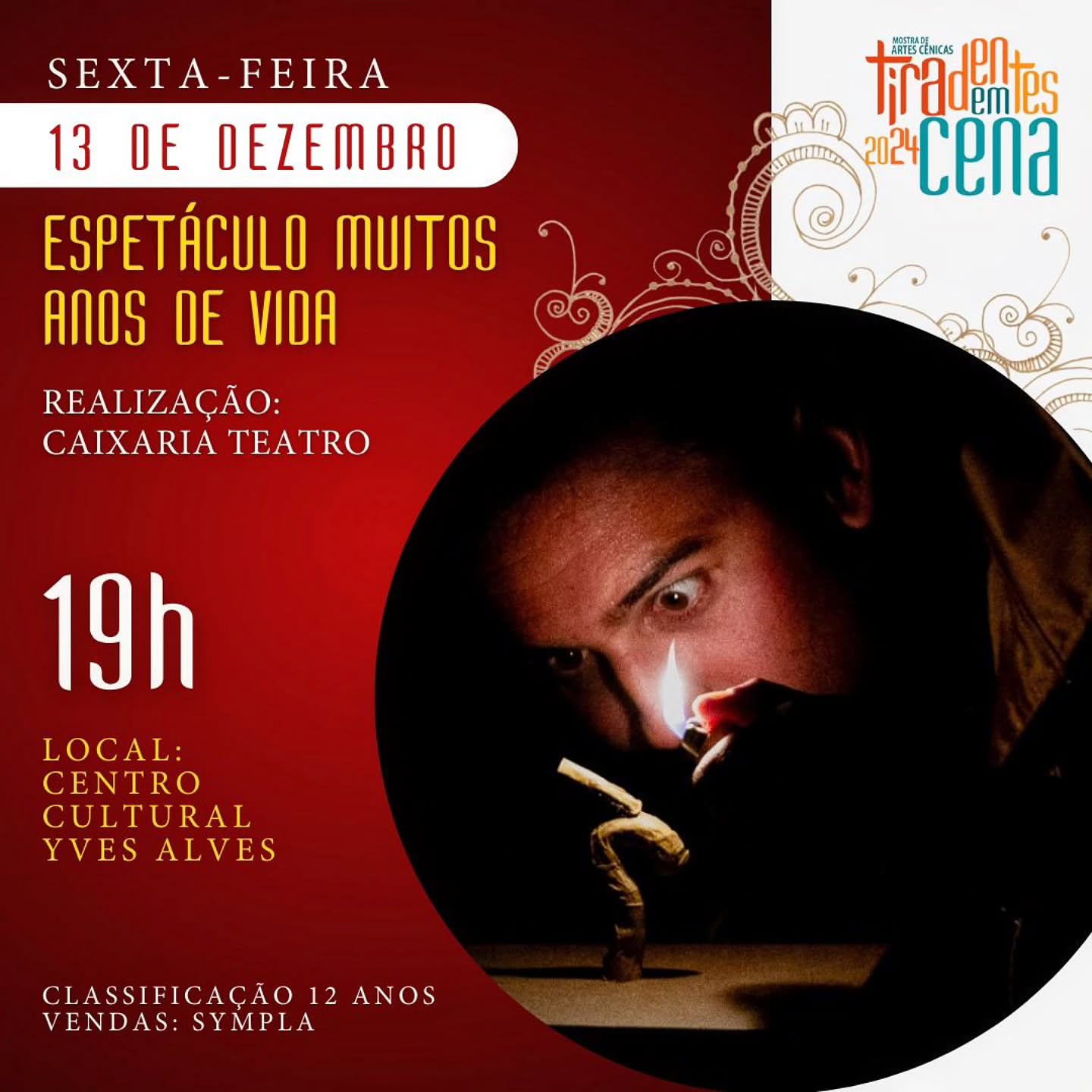 A peça "Muitos Anos de Vida" será apresentada nesta sexta-feira, 13 de dezembro, às 19h, no Centro Cultural Yves Alves, em Tiradentes. A história acompanha Caio, um recreador de festas de aniversário, explorando o cotidiano mágico e desafiador de sua profissão. Entre brincadeiras, pinturas e balões, o protagonista revisita sua trajetória ao se deparar com um evento inesperado em uma festa especial, revelando emoções e memórias profundas.