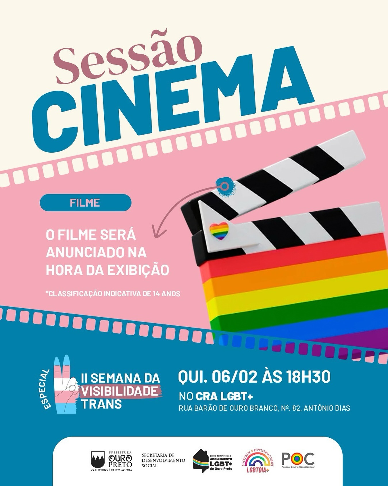 O título do filme será revelado no momento da exibição, com o objetivo de promover debates sobre os desafios da comunidade LGBT+ e ampliar reflexões a partir da obra escolhida. O CRA LGBT+ está localizado na Rua Barão de Ouro Branco, nº 82, bairro Antônio Dias, e é um equipamento público da Secretaria de Desenvolvimento Social, mantido pela Prefeitura de Ouro Preto.