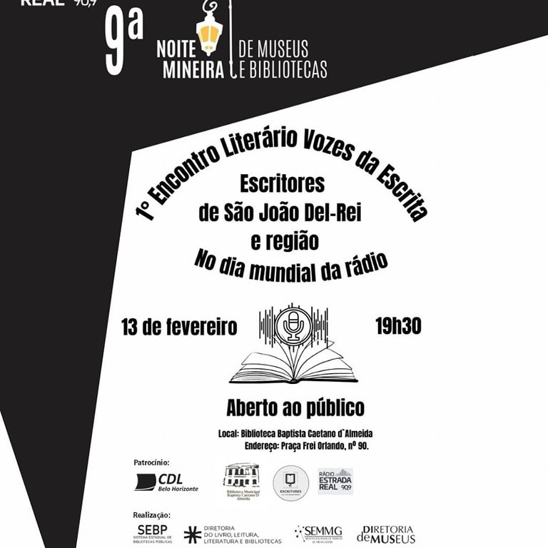 A Rádio Estrada Real participará do encontro, em celebração ao Dia Mundial do Rádio, promovendo a conexão entre literatura e comunicação. O evento ocorrerá das 19h30 às 21h30, na biblioteca localizada na Praça Frei Orlando, 90 – Centro, São João del-Rei.