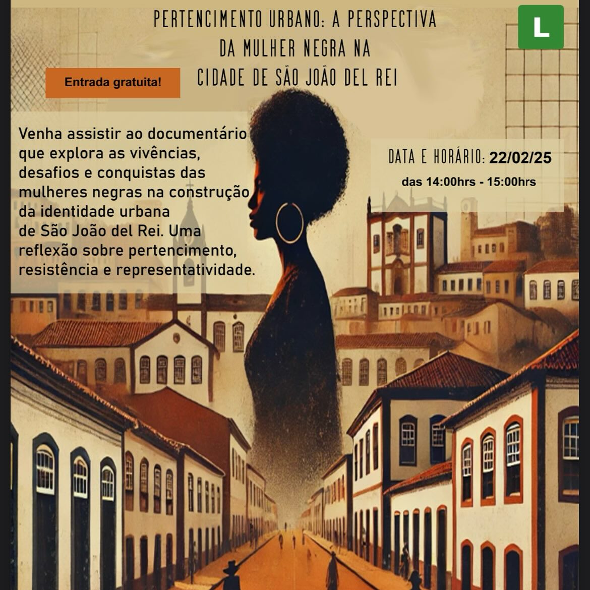 No dia 22 de fevereiro de 2025, às 14h no Centro Cultural da UFSJ, será exibido o documentário "Pertencimento Urbano: A Perspectiva da Mulher Negra em São João del-Rei". A sessão, que ocorre sempre aos sábados e com entrada gratuita, aborda as vivências, desafios e conquistas das mulheres negras na construção da identidade urbana da cidade.