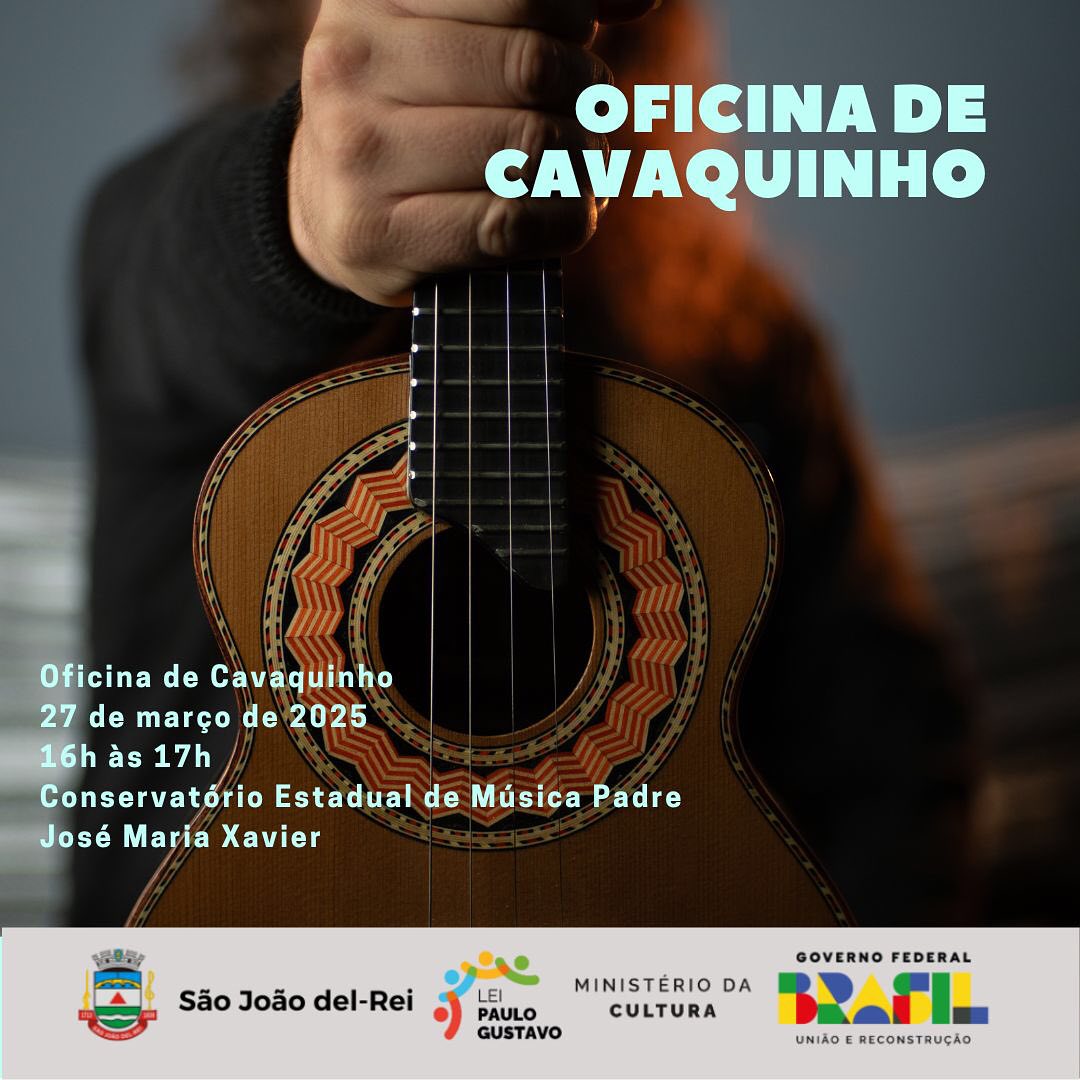 A Oficina de Cavaquinho será realizada no dia 27 de março, das 16h às 17h, no Conservatório Estadual de Música Padre José Maria Xavier, em São João del-Rei. A atividade é gratuita e aberta ao público interessado em aprimorar suas habilidades no instrumento, e será ministrada por Pablo Araujo Fernandes.