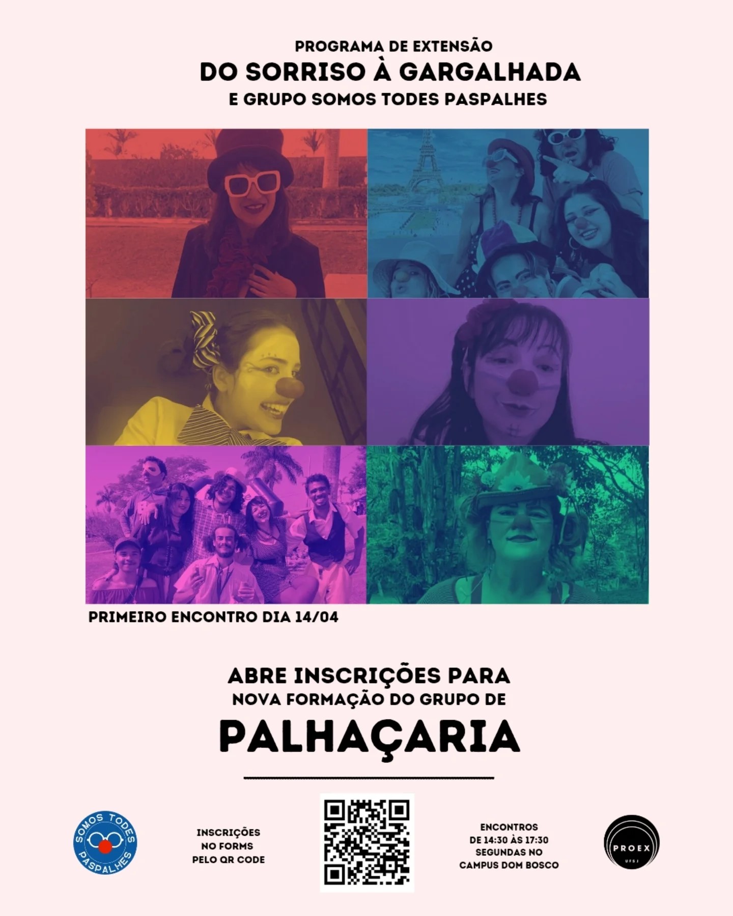 O programa de extensão "Do Sorriso à Gargalhada" e Grupo de Somos todos Paspalhes darão início a suas atividades de 2025 com o primeiro encontro no dia 14 de abril, voltado para a comunidade universitária e geral. A iniciativa é aberta a qualquer pessoa maior de 18 anos com interesse em vivências circenses, independentemente de experiência prévia. O objetivo é proporcionar um espaço de troca, aprendizado e prática de técnicas circenses em grupo.