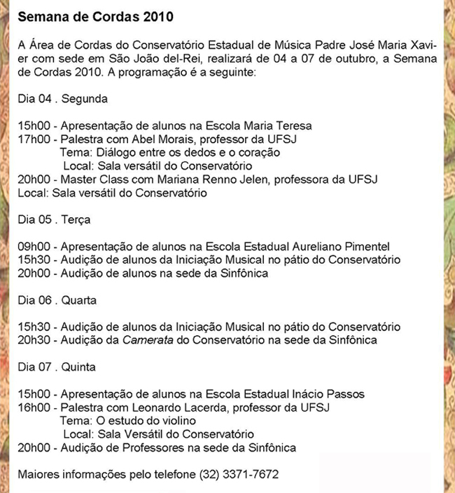 Semana de Cordas 2010 . 04 a 07 de outubro
