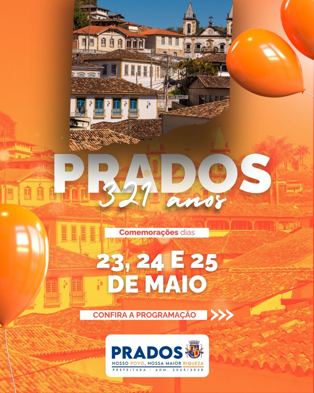 A cidade de Prados (MG) celebra seus 321 anos de emancipação com uma programação especial nos dias 23, 24 e 25 de maio de 2025. As atividades acontecerão em diferentes locais do município, incluindo o Centro de Prados, Bichinho e Pitangueiras, com atrações voltadas para toda a comunidade, como brinquedos infantis, sessões de cinema gratuitas e apresentações musicais.