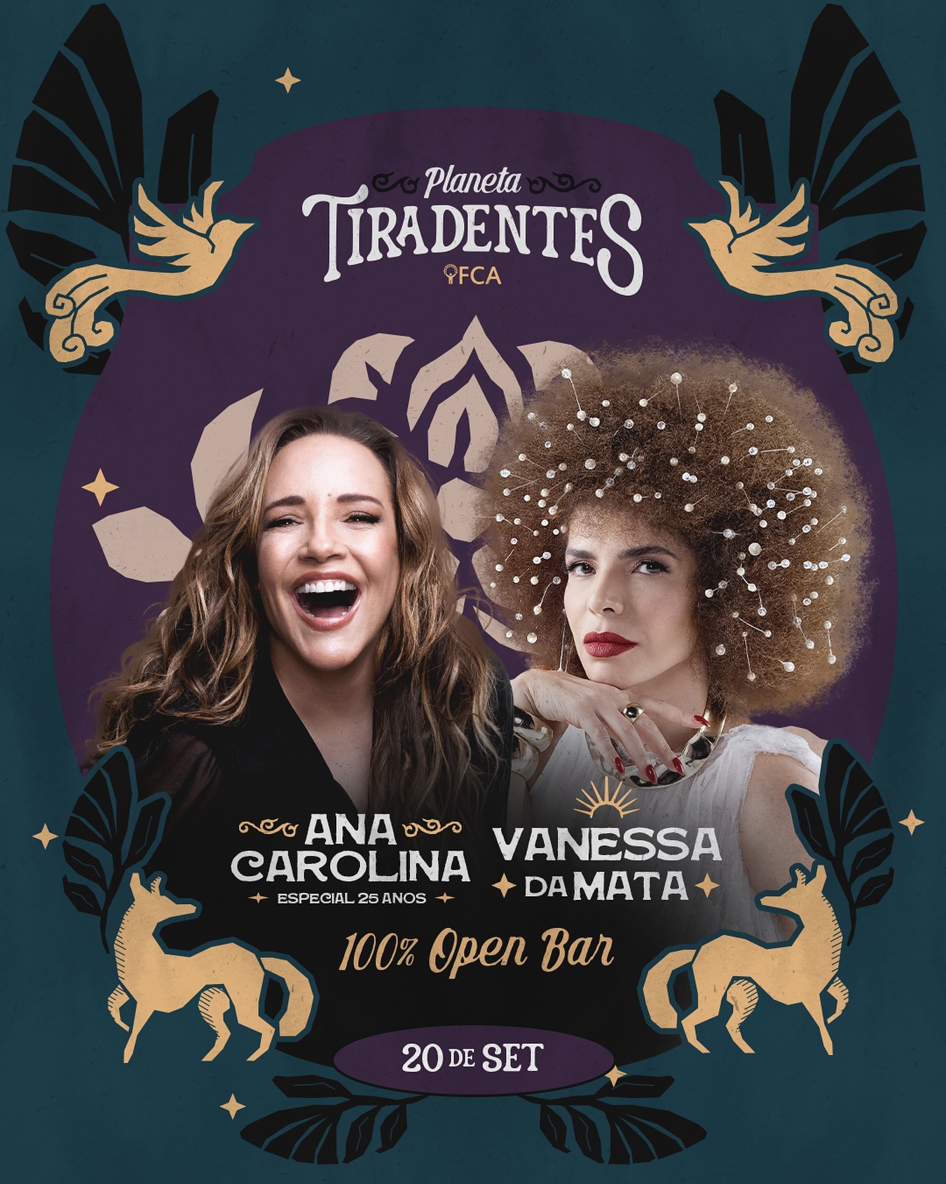 O evento Planeta Tiradentes acontece em 20 de setembro de 2025, trazendo dois grandes nomes da música brasileira para a cidade histórica de Tiradentes (MG). A programação inclui os shows de Ana Carolina, que celebra 25 anos de carreira, e Vanessa da Mata, intérprete consagrada e reconhecida pela força de sua voz e presença de palco.