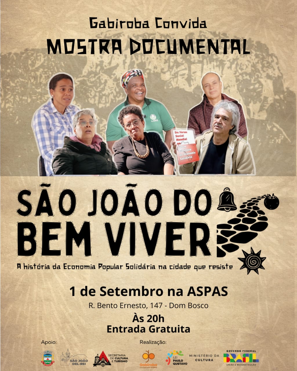 O documentário “São João do Bem Viver – Construindo a Economia Popular Solidária na Cidade que Resiste” estreia em 1º de setembro de 2025 (segunda-feira), às 20h, na Associação Pró-Autistas (ASPAS), localizada na Rua Bento Ernesto, 147, bairro Dom Bosco, em São João del-Rei (MG). A entrada é gratuita e a sessão também será transmitida pelo canal da Gabiroba Comunicação no YouTube.
