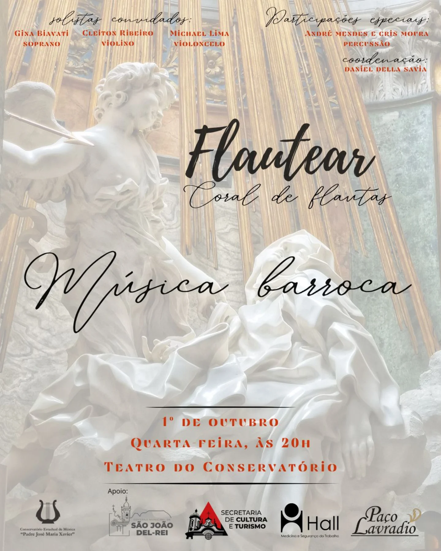 O Conservatório Estadual de Música Padre José Maria Xavier, em São João del-Rei, realiza no dia 1º de outubro de 2025 (quarta-feira), às 20h, um concerto especial dedicado à música barroca. A apresentação contará com convidados e formações musicais que dialogam diretamente com a tradição cultural da cidade. O evento acontece no Teatro do Conservatório e tem entrada gratuita.