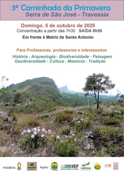A 3ª Caminhada da Primavera - Travessia da Serra São de José é uma iniciativa da Mandala Produção e do Instituto Cultural Biblioteca do Ó, conta com o apoio institucional da Prefeitura Municipal de Tiradentes – através da Superintendência de Meio Ambiente, do Instituto Cultural Flávio Gutierrez – Museu de Sant’Ana e do IEF – Instituto Estadual de Florestas de Minas Gerais / APA São José e REVS – Refúgio Estadual de Vida Silvestre Libélulas da Serra de São José.