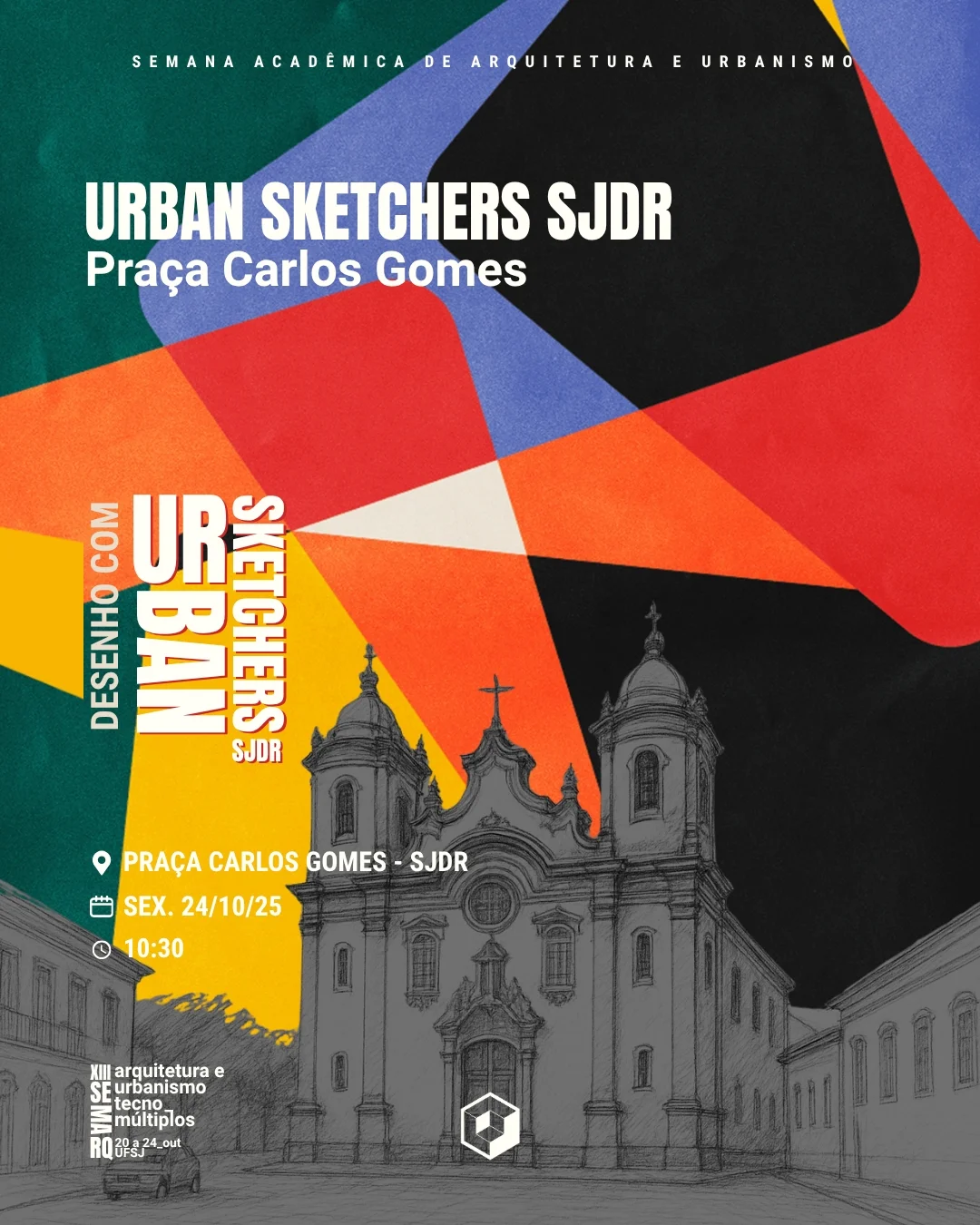 A XIII Semana da Arquitetura e Urbanismo (SEMARQ) contará com uma atividade especial promovida pelo grupo Urban Sketchers São João del-Rei, que realizará um encontro aberto na Praça Carlos Gomes, no dia 24 de outubro, às 10h30. O evento integra a programação da semana dedicada à reflexão sobre o papel da arquitetura e do urbanismo na preservação do patrimônio e na valorização da cidade.