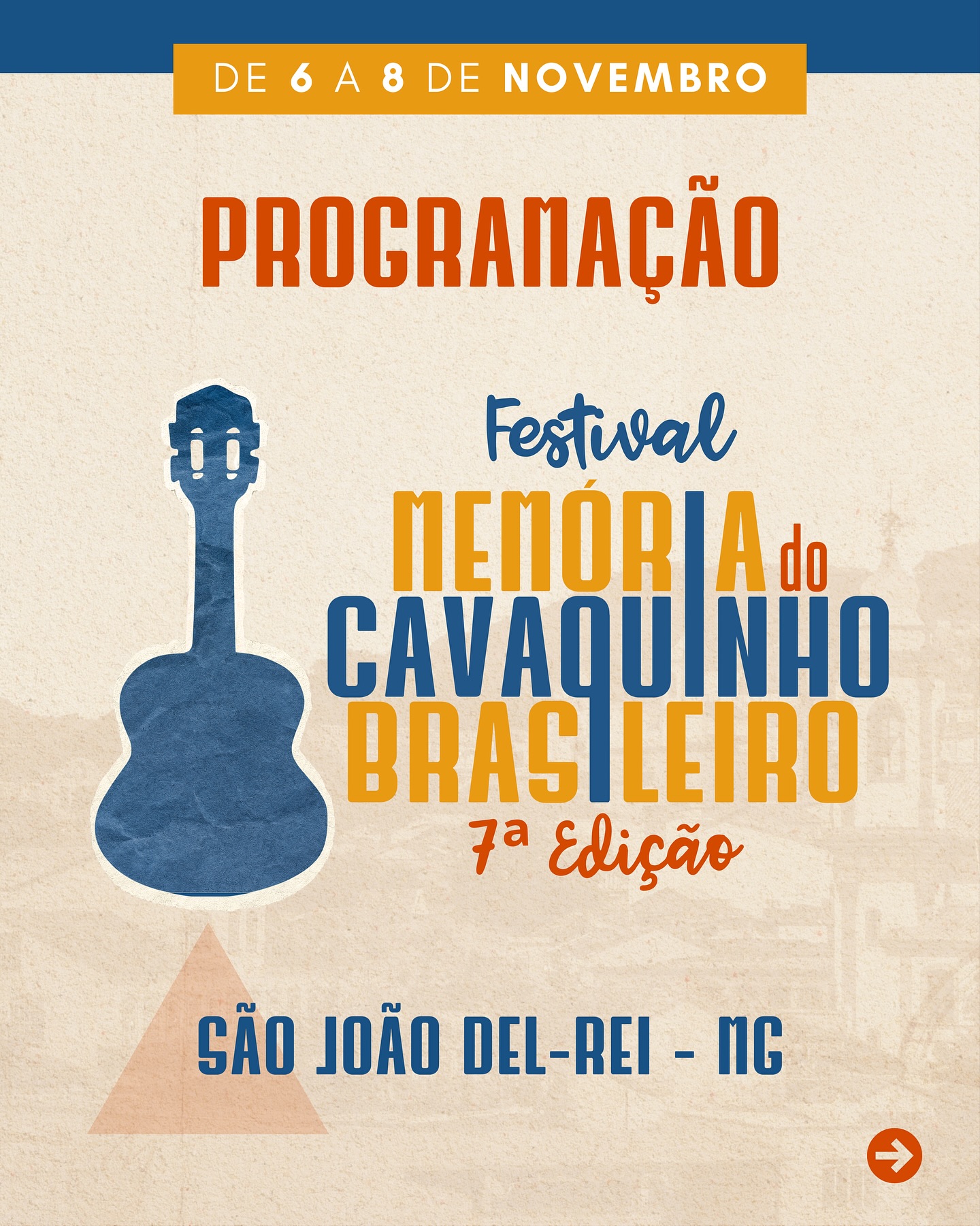 O Festival Memória do Cavaquinho Brasileiro – Edição São João del-Rei será realizado entre os dias 6 e 8 de novembro de 2025, em diversos espaços culturais da cidade histórica mineira. O evento reúne shows, oficinas e rodas de choro, promovendo a valorização do cavaquinho e da tradição do choro brasileiro, gênero essencial da música popular.