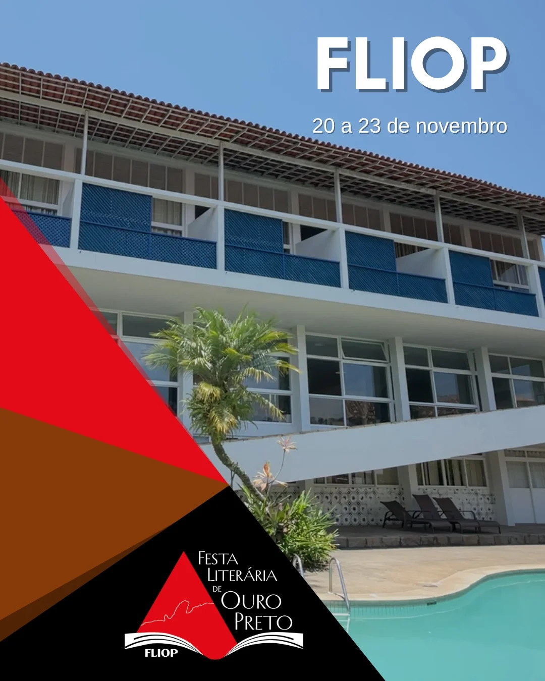 A Festa Literária de Ouro Preto (FLIOP) será realizada entre os dias 20 e 23 de novembro de 2025, no Grande Hotel de Ouro Preto, situado na Rua Senador Rocha Lagoa, em Minas Gerais. O local, projetado por Oscar Niemeyer, é um dos marcos arquitetônicos da cidade, com estrutura modernista e vista panorâmica para o centro histórico. O evento reunirá escritores, artistas, editoras e o público em uma celebração da literatura e da cultura mineira.