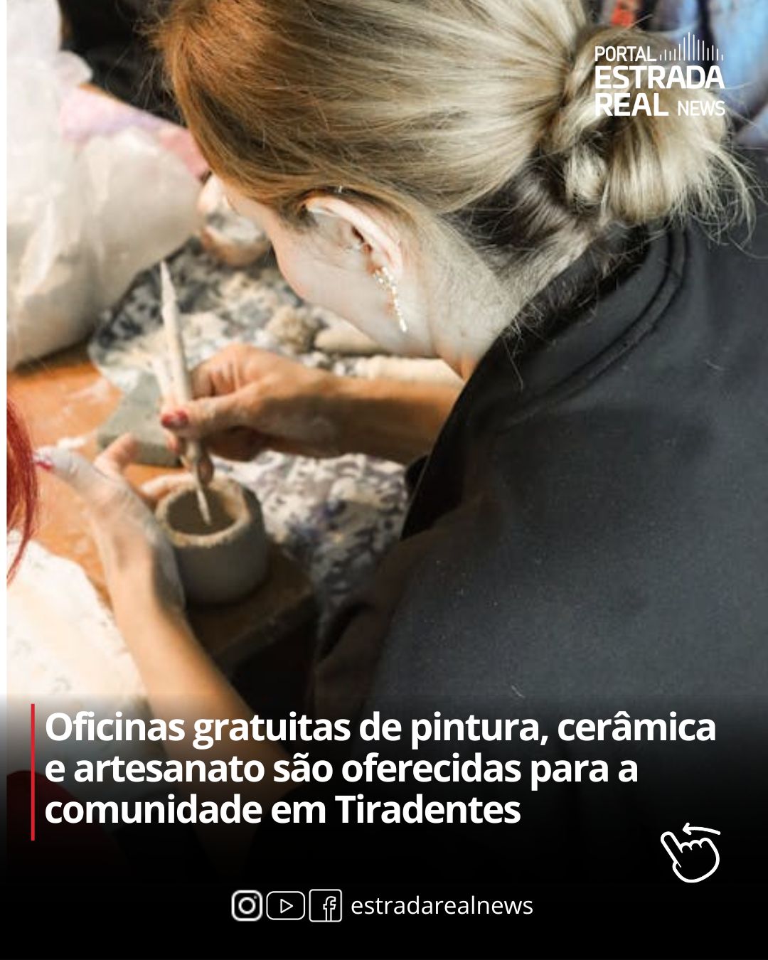 A Prefeitura de Tiradentes, por meio da Secretaria de Assistência Social e da Superintendência da Mulher, está oferecendo oficinas gratuitas de pintura em tecido, cerâmica e artesanato voltadas aos moradores dos bairros e à comunidade em geral. As atividades têm como objetivo promover aprendizado, convivência e fortalecimento dos laços comunitários. As oficinas acontecem em diversos bairros de Tiradentes (MG), com horários e locais variados ao longo da semana.