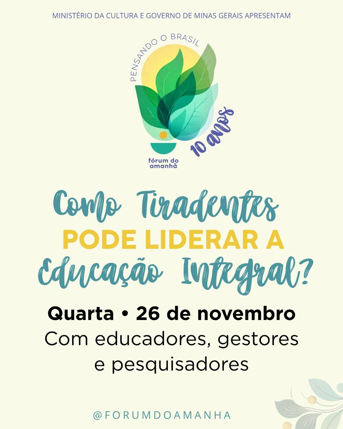 Fórum do Amanhã: Seminário “Como Tiradentes Pode Liderar a Educação Integral?”