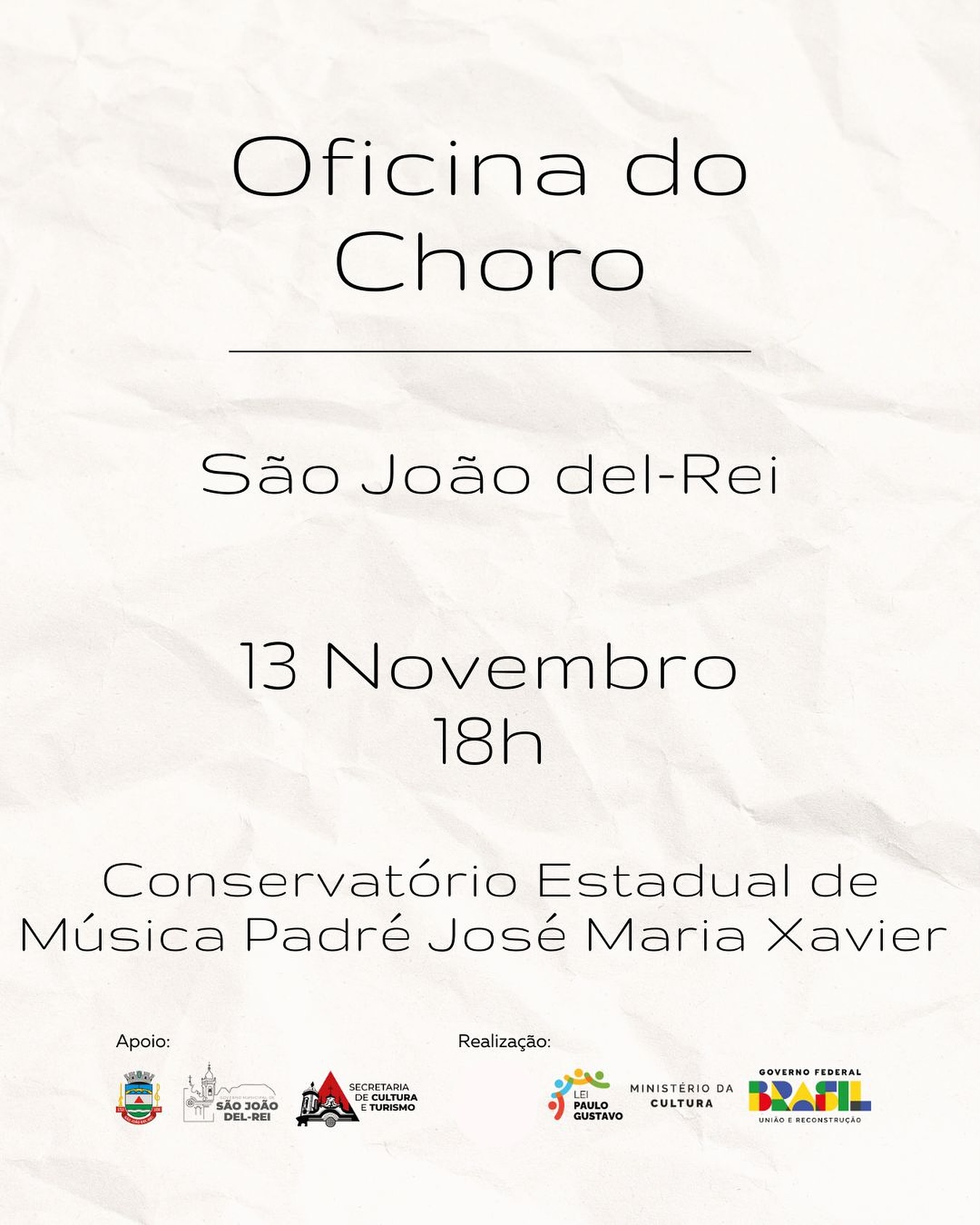 A atividade propõe uma imersão no universo do choro, destacando sua história, características musicais, técnicas de execução e o papel fundamental desse gênero na formação da música brasileira. A iniciativa busca valorizar e fortalecer a tradição do choro em São João del-Rei, cidade com importante trajetória musical.