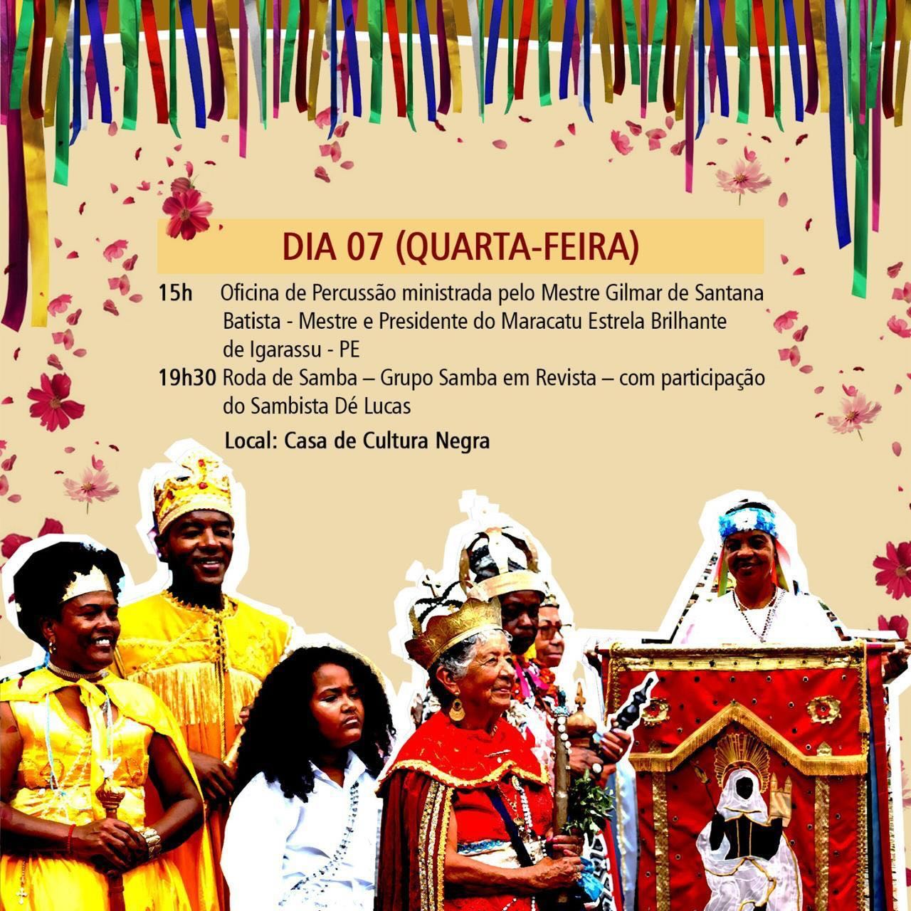 15h: Oficina de Percussão com Mestre Gilmar de Santana Batista (Maracatu Estrela Brilhante de Igarassu – PE)