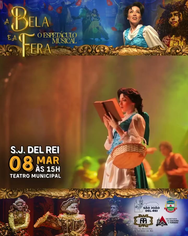 O espetáculo “A Bela e a Fera | O Musical” será apresentado em São João del-Rei (MG) no dia 8 de março de 2026, no Teatro Municipal de São João del-Rei, localizado na Rua José Gômide, s/n, Centro. A montagem integra a turnê nacional do musical, que já percorreu mais de 50 cidades brasileiras e também realizou apresentações no Uruguai e na Argentina.
