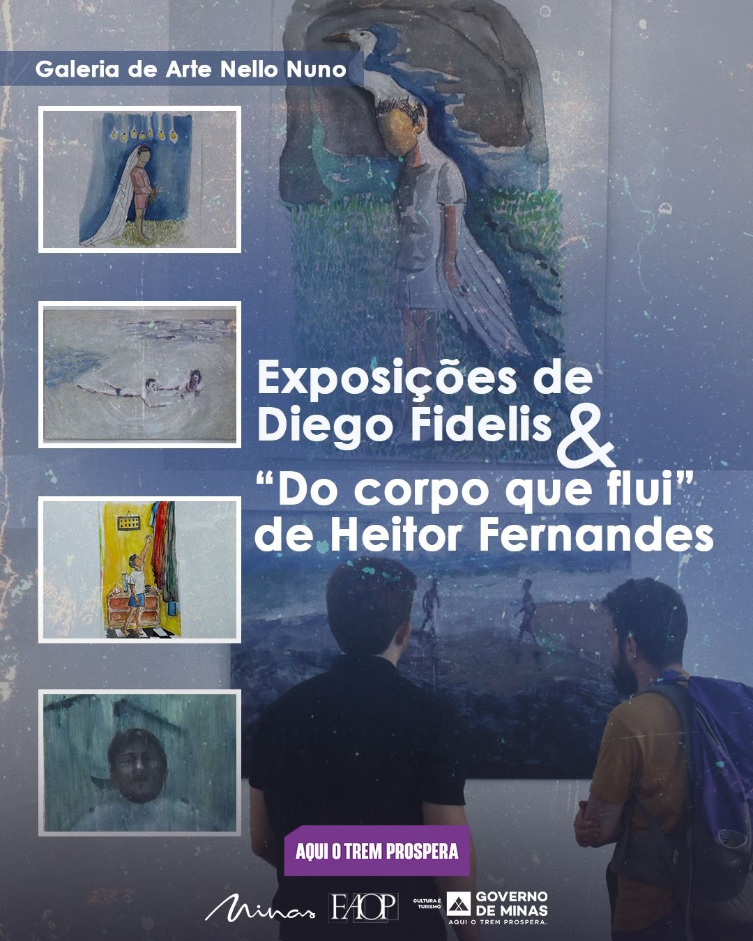 As exposições Diego Fidelis e “Do corpo que flui”, de Heitor Fernandes, estão em cartaz na Galeria de Arte Nello Nuno, localizada na Rua Getúlio Vargas, 185, bairro Rosário, em Ouro Preto. As mostras inauguram o calendário expositivo do espaço e permanecem abertas ao público até 21 de março, com entrada gratuita.