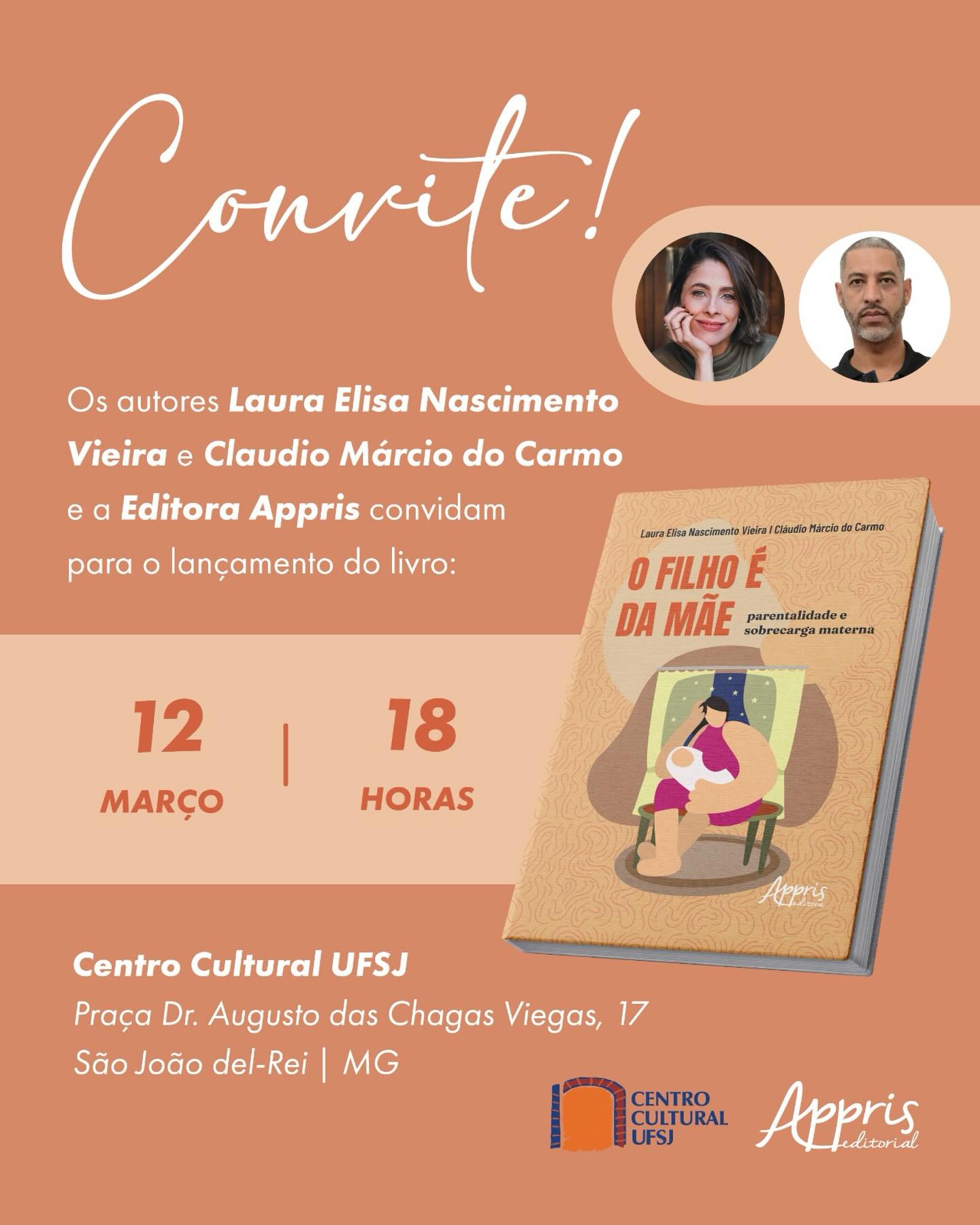 O lançamento do livro “O Filho é da Mãe: parentalidade e sobrecarga materna” será realizado no dia 12 de março, às 18h, no Centro Cultural UFSJ, localizado na Praça Dr. Augusto das Chagas Viegas, 17, em São João del-Rei (MG). A atividade integra a programação cultural da instituição e conta com o apoio da Editora Appris.