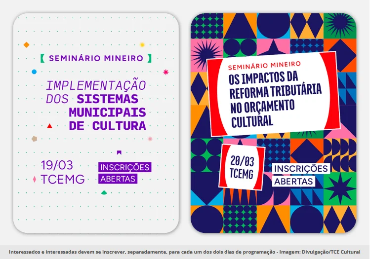 Os seminários sobre políticas públicas de cultura em Minas Gerais serão realizados nos dias 19 e 20 de março de 2026, das 8h às 18h, no Auditório Vivaldi Moreira, na sede do Tribunal de Contas do Estado de Minas Gerais (TCEMG), em Belo Horizonte (MG). A iniciativa é promovida pelo TCEMG, pelo Ministério da Cultura (MinC), entidades parceiras e representantes da sociedade civil, reunindo gestores públicos, especialistas e profissionais do setor cultural.