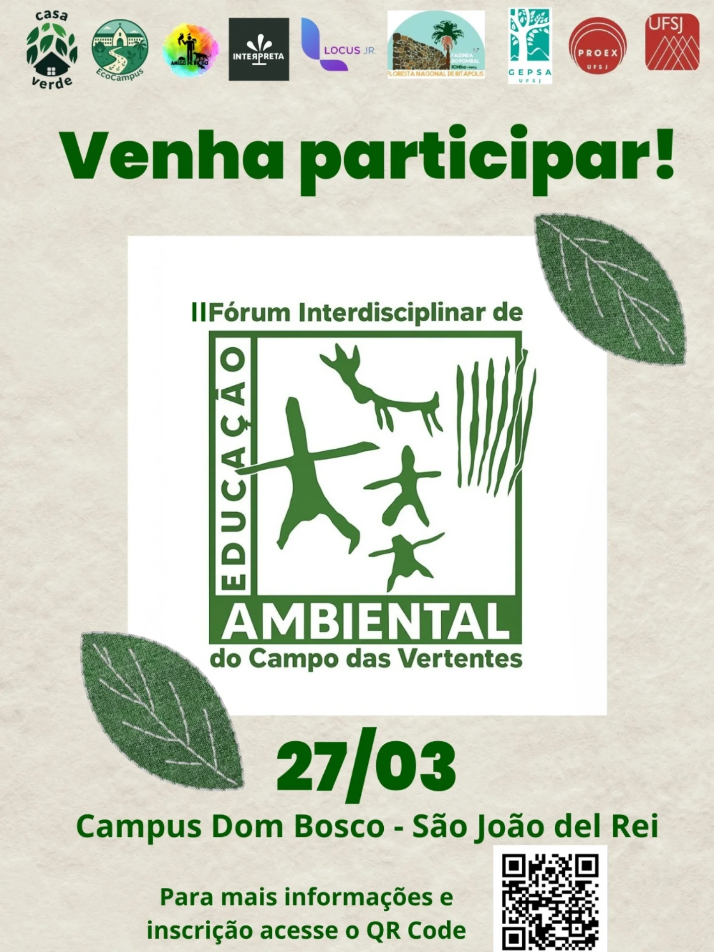 O II Fórum Interdisciplinar de Educação Ambiental do Campo das Vertentes será realizado no dia 27 de março, das 8h às 17h, no Auditório do Campus Dom Bosco da UFSJ, em São João del-Rei (MG). A iniciativa reúne palestras, debates e trocas de experiências voltadas à educação ambiental, sustentabilidade e atuação comunitária, conectando universidade, escolas e հասարակ sociedade.