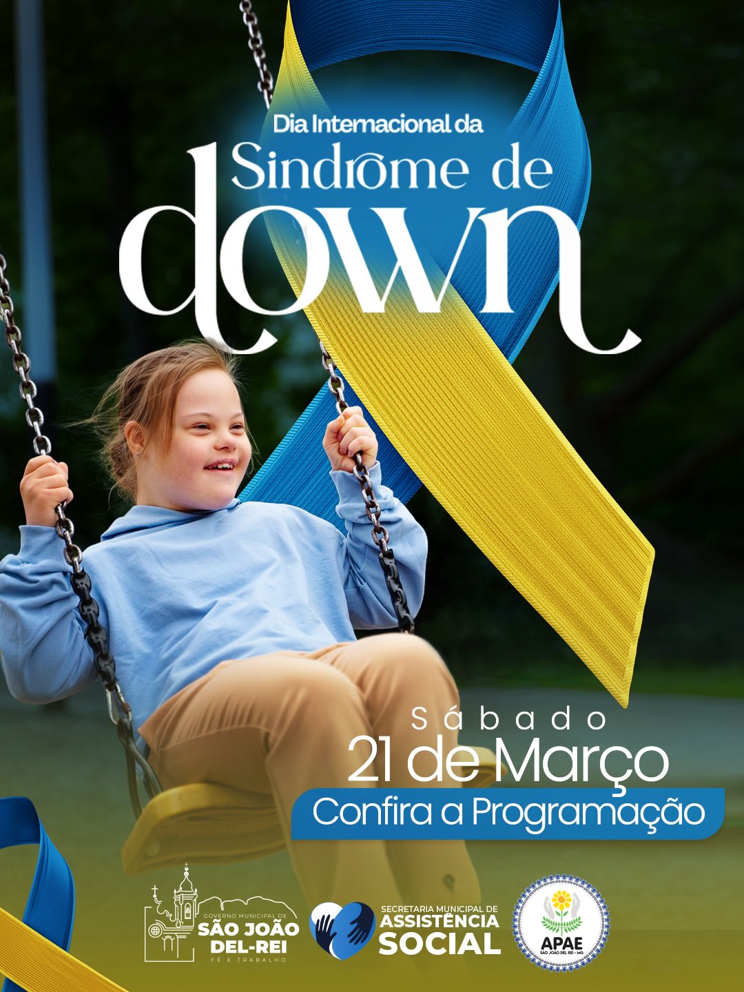 A celebração do Dia Internacional da Síndrome de Down será realizada no dia 21 de março, a partir das 9h, ao lado do coreto, em São João del-Rei (MG). A iniciativa é promovida pela Secretaria Municipal de Assistência Social, em parceria com a APAE, reunindo atividades voltadas à inclusão, conscientização e valorização das pessoas com Síndrome de Down.