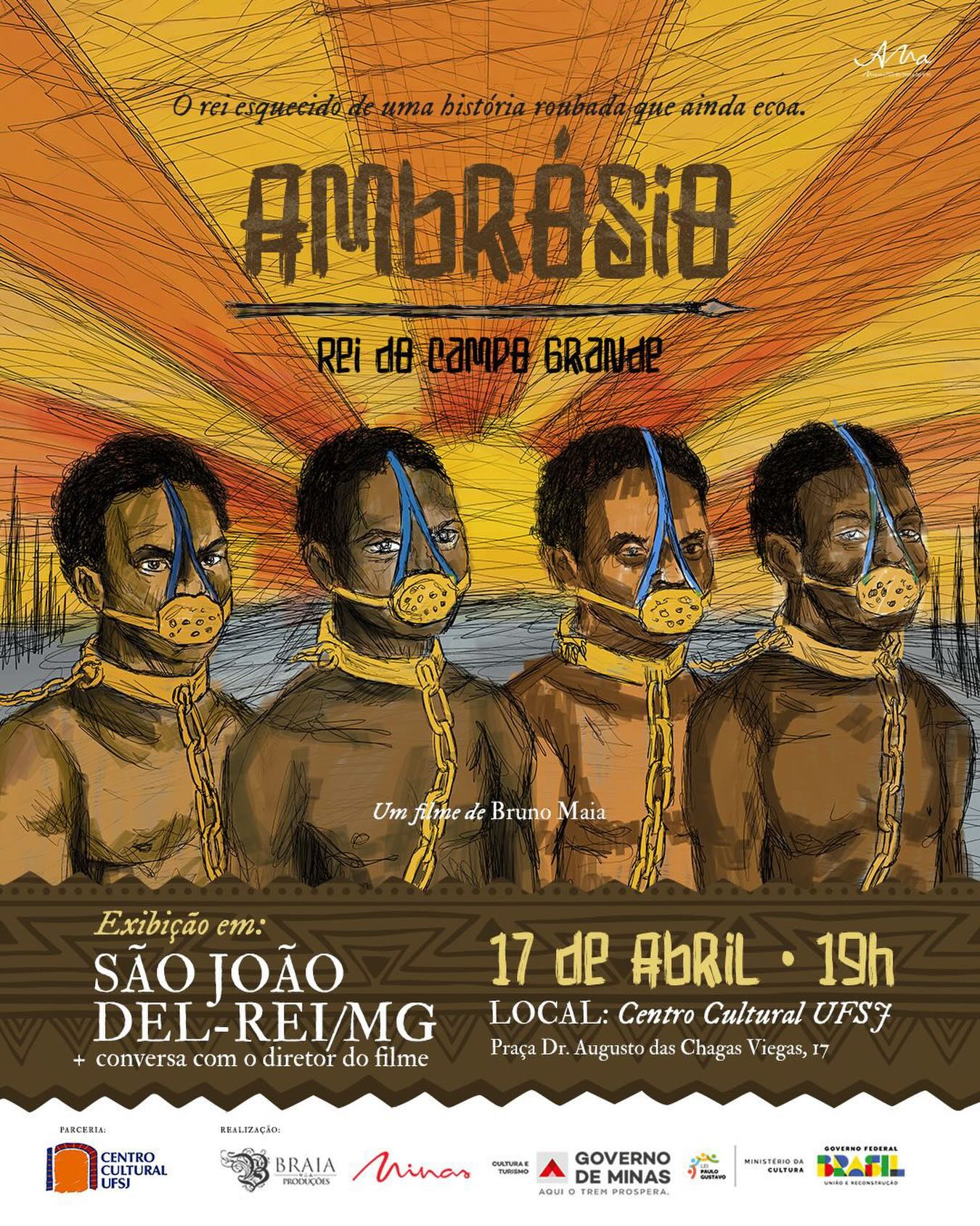 Ambrósio: Rei do Campo Grande será exibido no dia 17 de abril de 2026, às 19h, no Centro Cultural UFSJ, em São João del-Rei. O documentário apresenta a trajetória de Ambrósio, personagem ligado à história do sertão do Campo Grande e dos quilombos em Minas Gerais, destacando sua atuação no século XVIII.