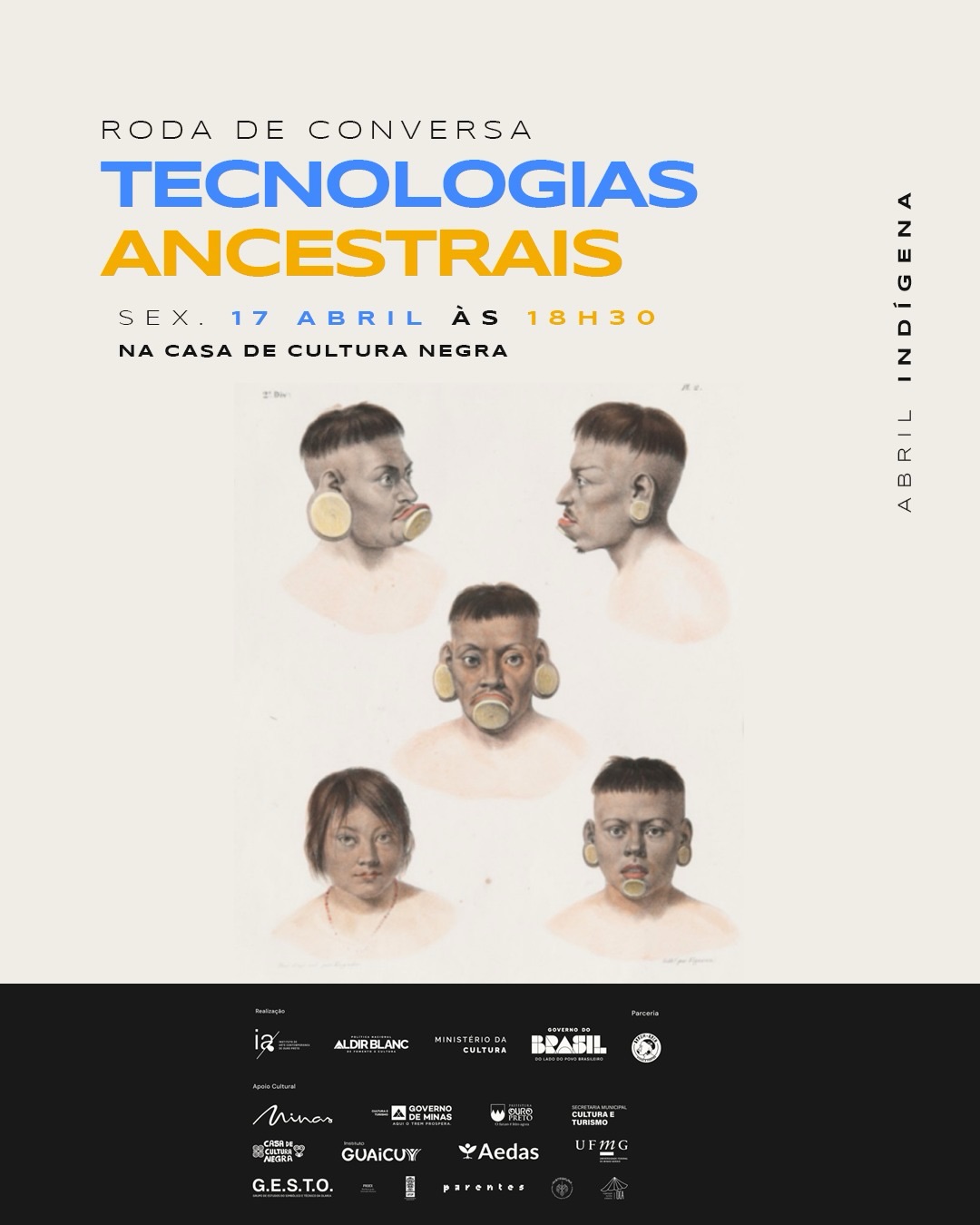 A Roda de Conversa “Tecnologias Ancestrais” será realizada no dia 17 de abril de 2026, às 18h30, na Casa de Cultura Negra, em Ouro Preto. A atividade integra a programação do Abril Indígena, com foco na valorização dos saberes tradicionais e na promoção do diálogo sobre culturas originárias.