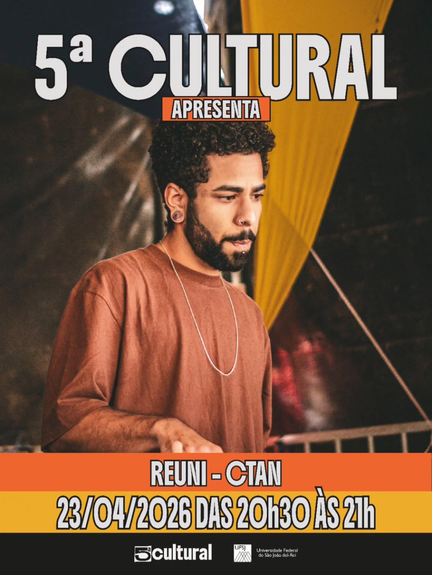 O projeto 5ª Cultural realiza mais uma edição da série de encontros artísticos intitulada “Nos Embalos de Quinta à Noite”, com apresentação do DJ Bolin, reforçando a proposta de promover atividades culturais acessíveis no ambiente universitário. A iniciativa integra a programação contínua do projeto, que busca incentivar a circulação de artistas e a ocupação cultural de espaços públicos e acadêmicos em São João del-Rei (MG).