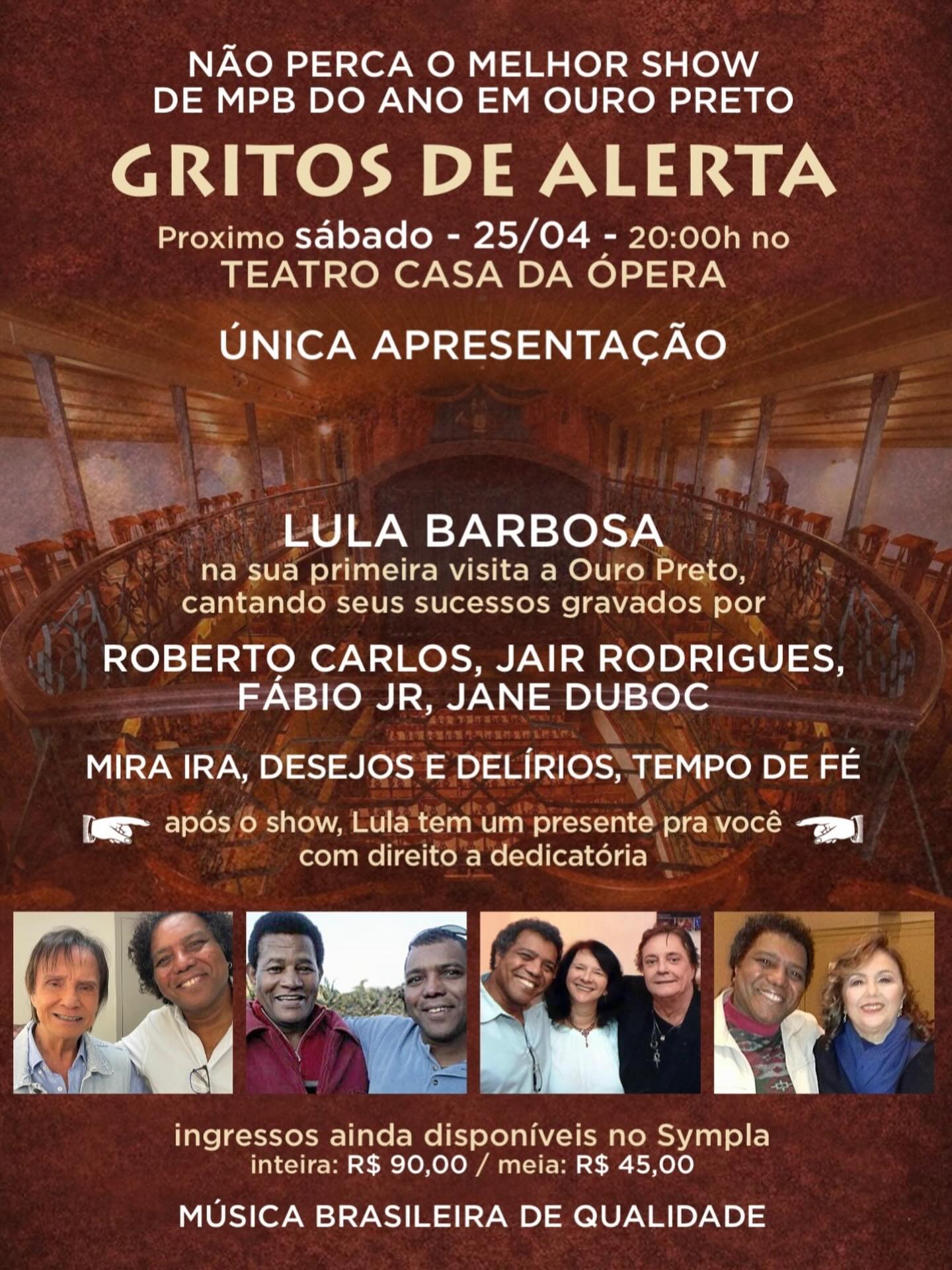 Show de MPB "Gritos de Alerta: reflexões de um tempo torto" com cantor e compositor Lula Barbosa