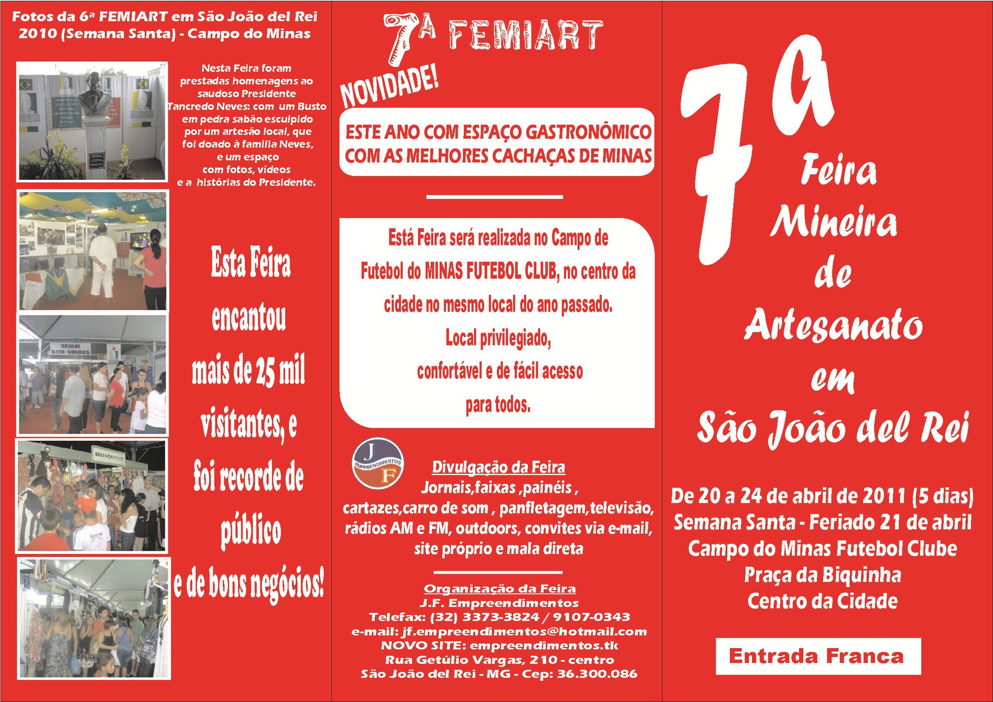 7ª Feira Mineira de Artesanato em São João del-Rei . 20 a 24 de abril