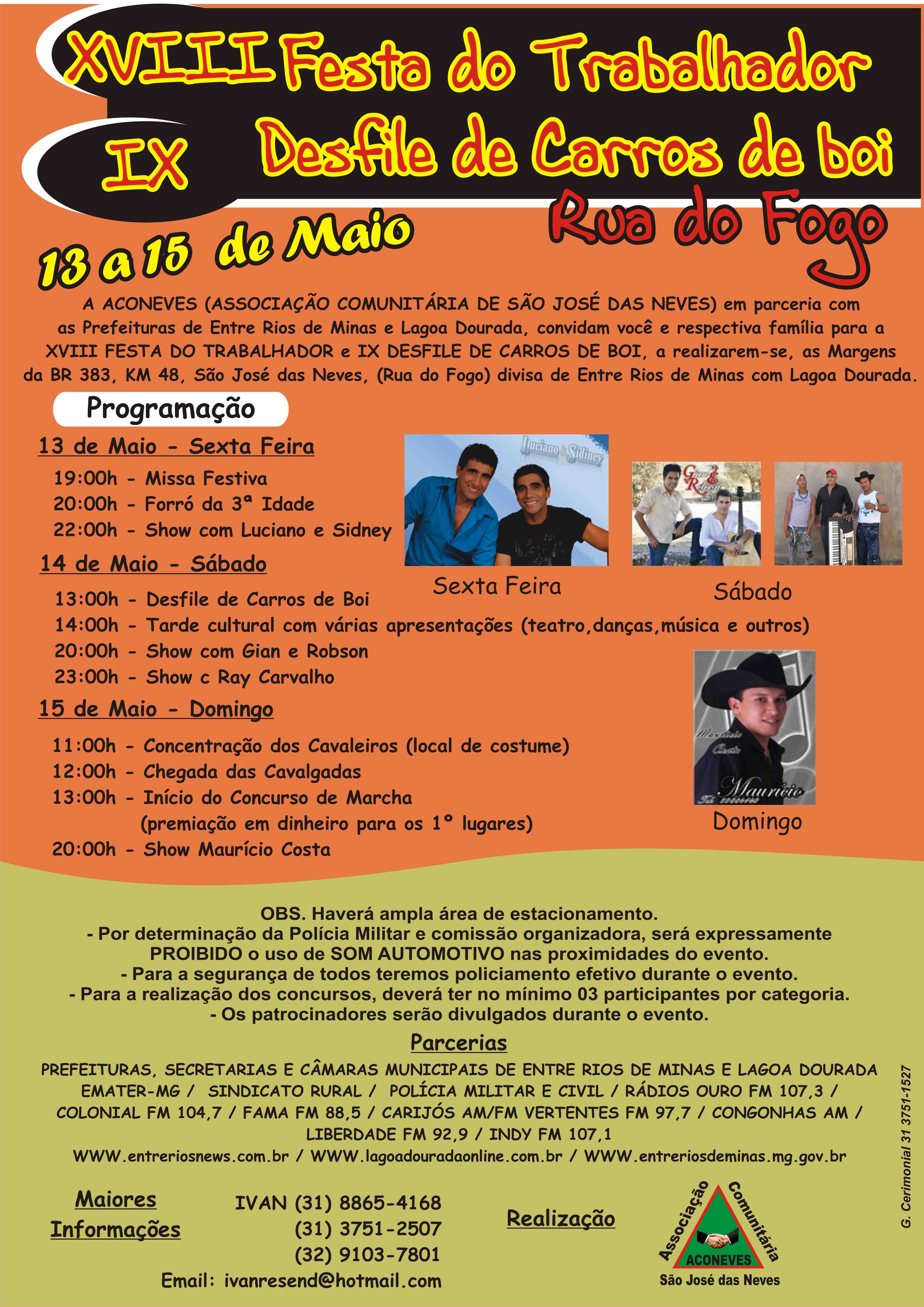 Festa Rua do Fogo . XVIII Festa do Trabalhador e IX Desfile de carros de boi .13 a 15 de Maio