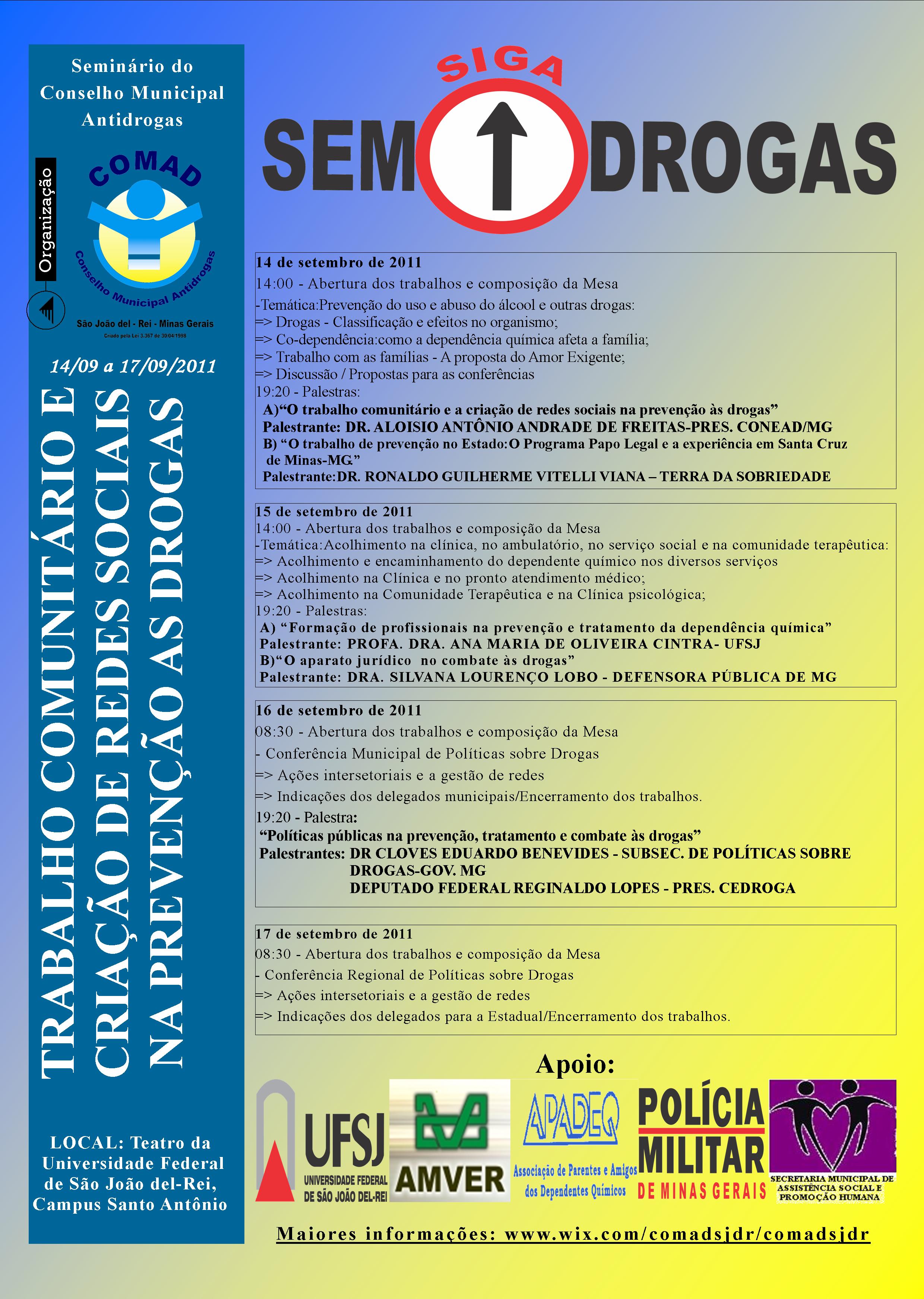 Seminário COMAD . Trabalho comunitário e criação de redes sociais na prevenção as drogas . 14 a 17 de Setembro