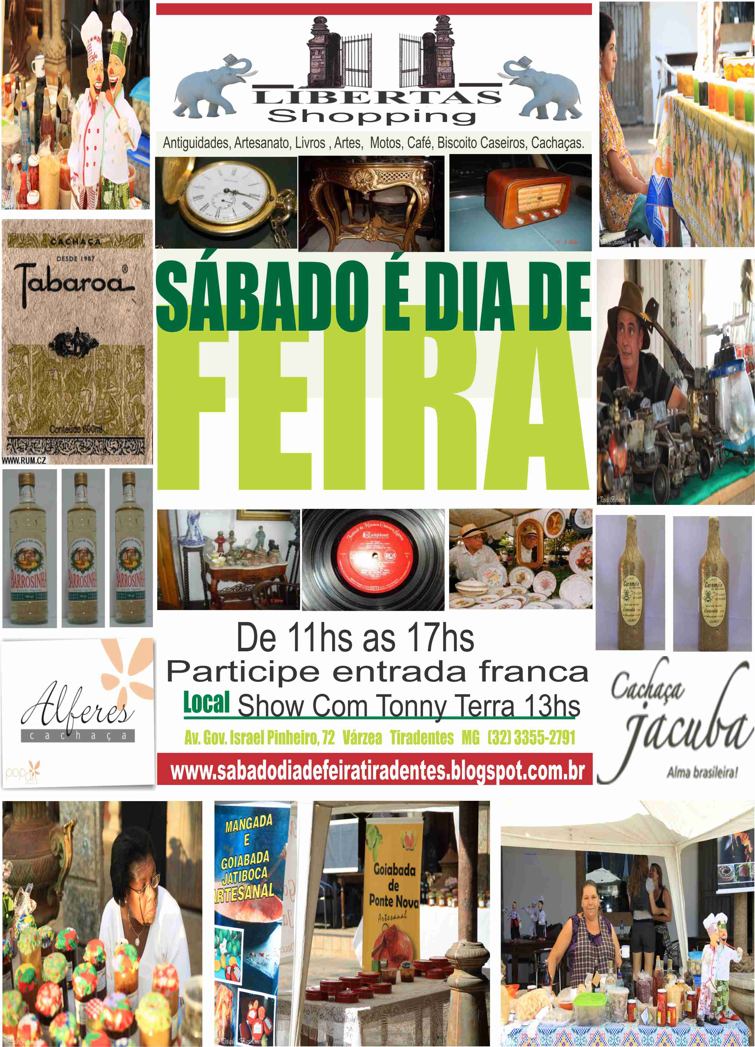 Feira de antiguidades, artesanato, livros, artes, motos, café, biscoito caseiros e cachaças .Shopping Libertas