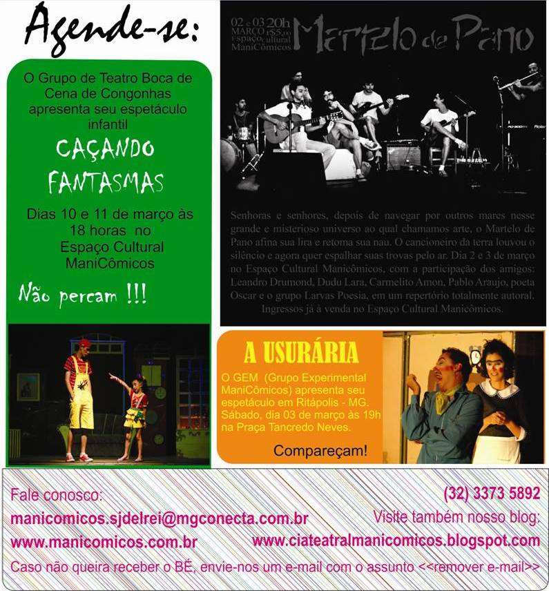 página inicial | livro ser nobre é ter identidade | rede colaborativa pró-agenda 2030 Agenda Cultural Programação . Cia Teatral Manicômicos . Março Data 02/03/2012 Cidade SJDR Descrição Outras informações: Companhia Teatral ManiCômicos Compartilhar no Facebook Compartilhar no Instagram Compartilhar no Whatsapp Imprimir