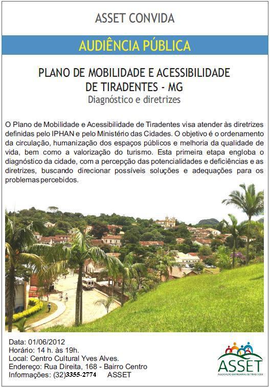Plano de Mobilidade e Acessibilidade de Tiradentes . Audiência Pública
