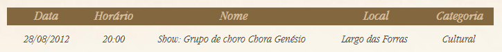 página inicial | livro ser nobre é ter identidade | rede colaborativa pró-agenda 2030 Agenda Cultural XV Festival Cultura e Gastronomia Tiradentes . Programação 28 de Agosto . Show Data 28/08/2012 Cidade Tiradentes Descrição Veja programação completa Compartilhar no Facebook Compartilhar no Instagram Compartilhar no Whatsapp Imprimir