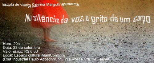Espetáculo de Dança "No Silêncio da voz, o grito de um corpo" . 22, 23 e 29 de Setembro