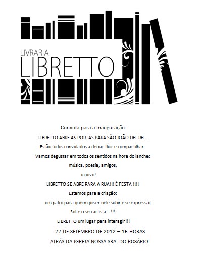 Libretto abre suas portas para São João del Rei. Sarau de livre expressão. Estão todos convidados.