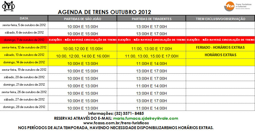 Circulação da Maria Fumaça . Outubro