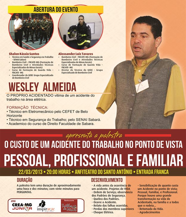 Palestra "O custo de um acidente do trabalho no ponto de vista pessoal, profissional e familiar"