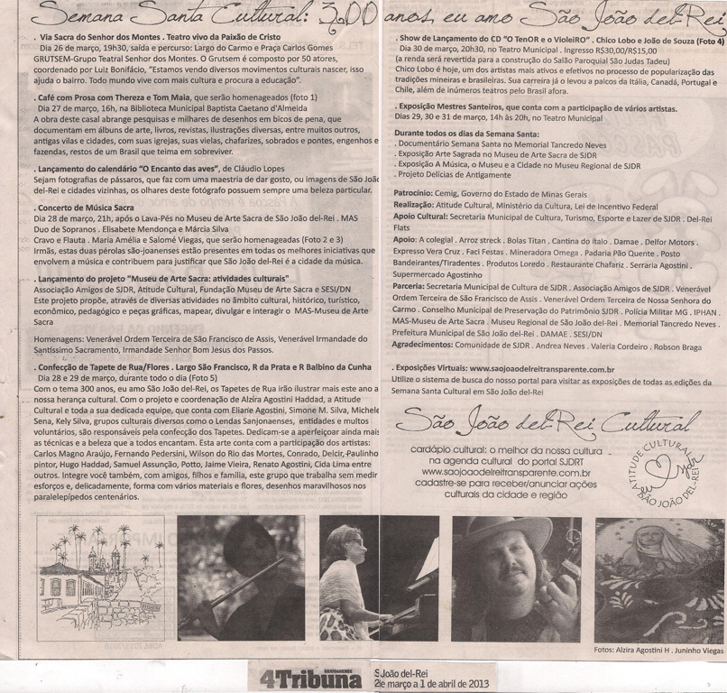 Confira o clipping de notícias da Semana Santa Cultural 2013