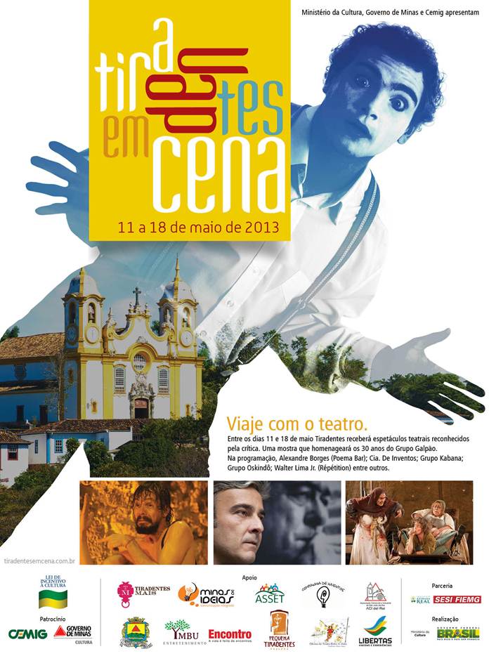 A ASSET convida todos para apresentação da primeira mostra de teatro de Tiradentes: o “Tiradentes em Cena” que acontecerá de 11 a 18 de maio. O projeto foi idealizado pela nossa associada Aline Garcia, que resolveu reunir assim suas duas paixões: a cidade de Tiradentes e o teatro. A Oficina de Teatro Entre & Vista, que há 19 anos ajuda no desenvolvimento artístico-cultural de Tiradentes, acreditou no projeto e uniu forças para transformar esse sonho em realidade.