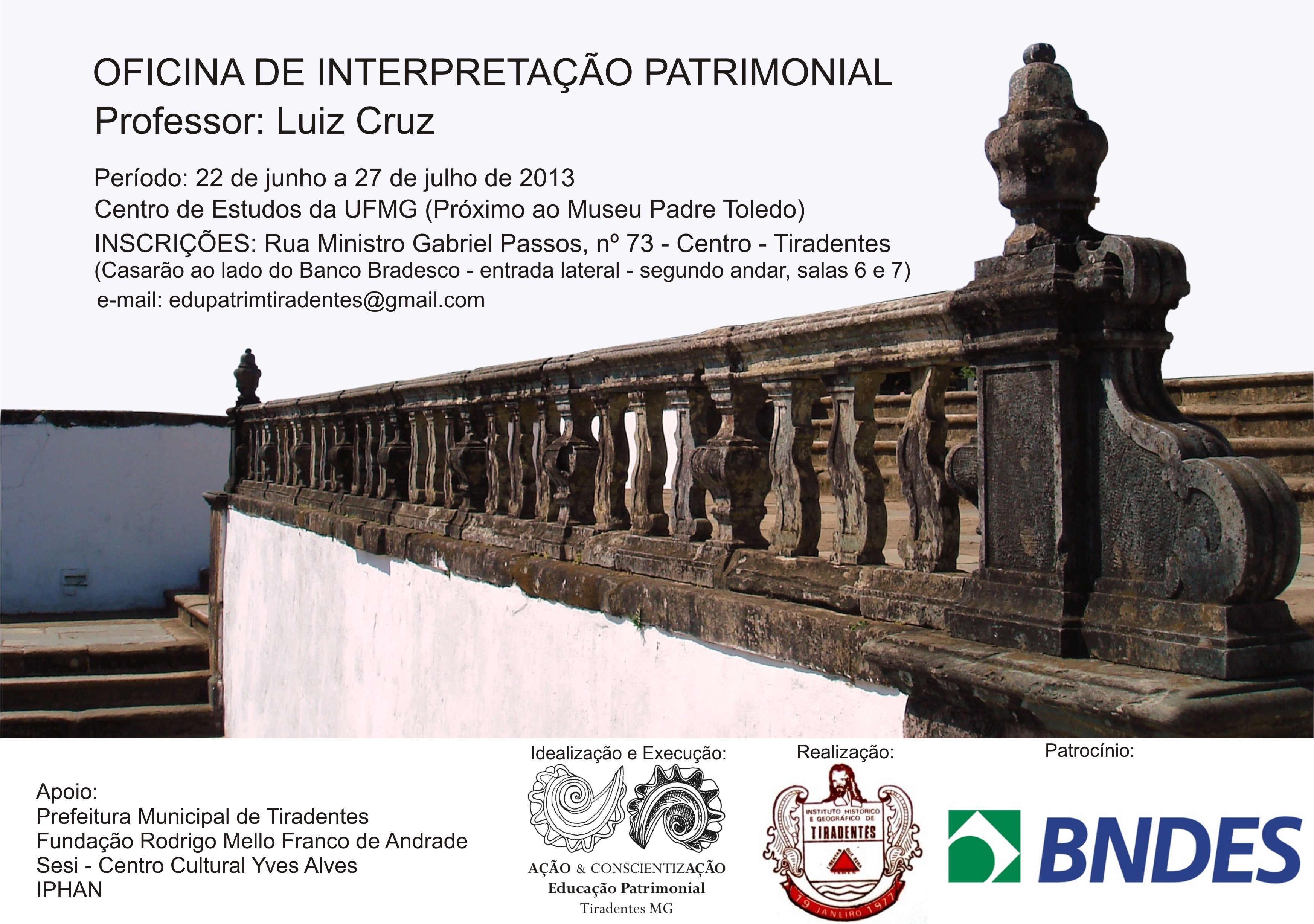 Oficina de Interpretação Patrimonial . Professor Luiz Cruz . De 22 de Junho a 27 de Julho