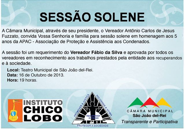 Sessão Solene em homenagem aos 5 anos da APAC - Associação de Proteção e Assistência aos Condenados